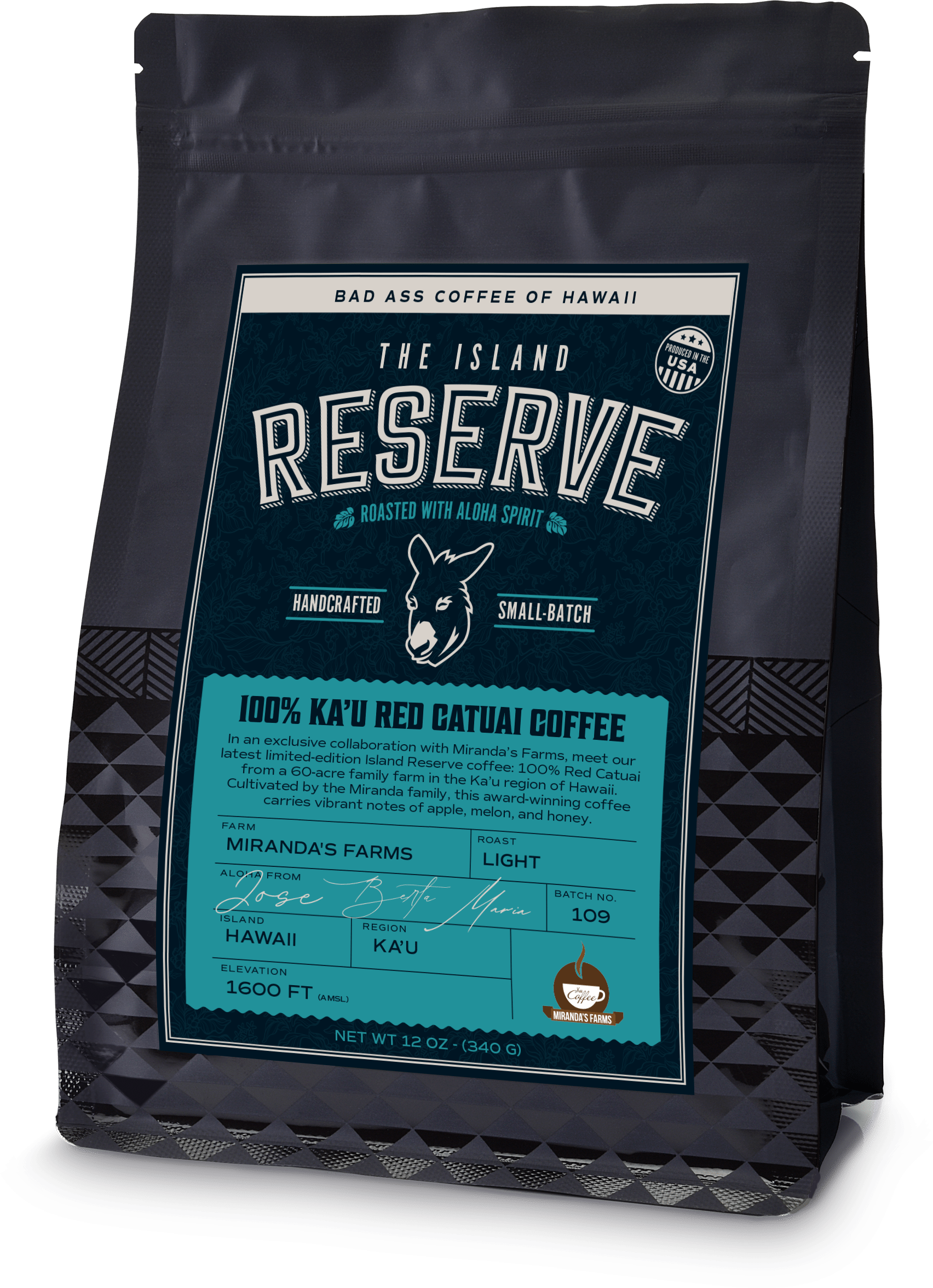 At an elevation of 1600 feet, Miranda Farms’ unique weather patterns and volcanic soil create the perfect environment for growing exceptional coffee. The 100% Ka’u Red Catuai varietal, a hybrid of Mundo Novo and Caturra from Brazil, is celebrated for its clean, bright flavors and balanced acidity.